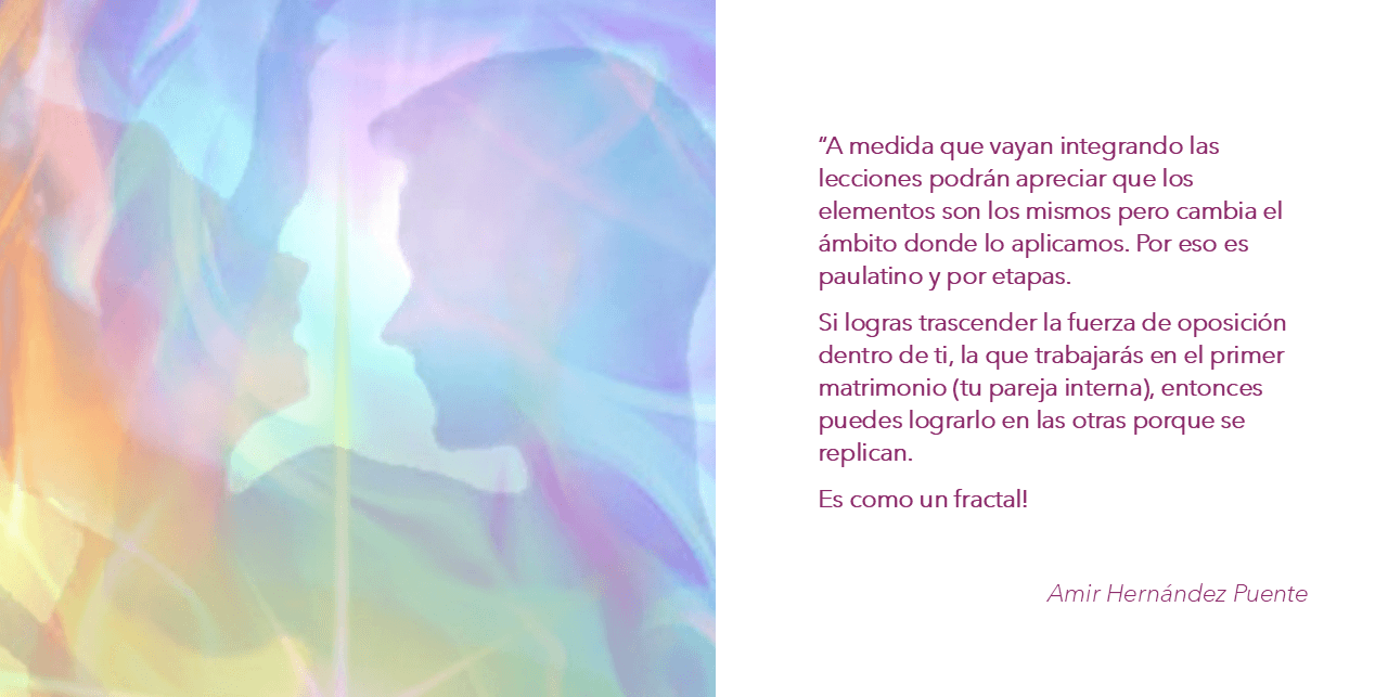 Una vez asimilado el matrimonio de tu pareja interior podrás comprobar cómo se replica en otras áreas de tu vida, en ti, y para con otros al relacionarte.